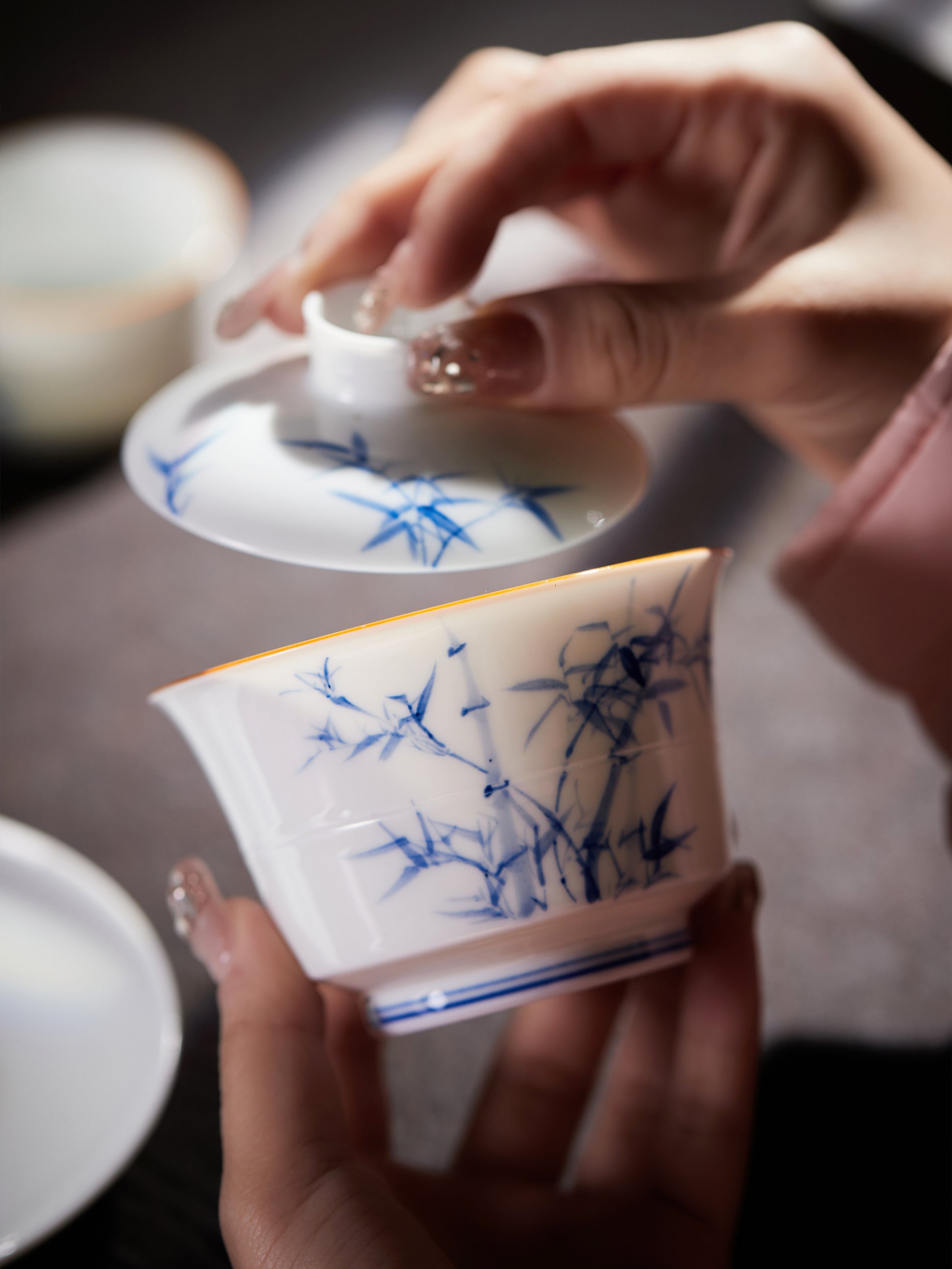 Jingdezhen Qinghua Porcelain: Bamboo Gaiwan