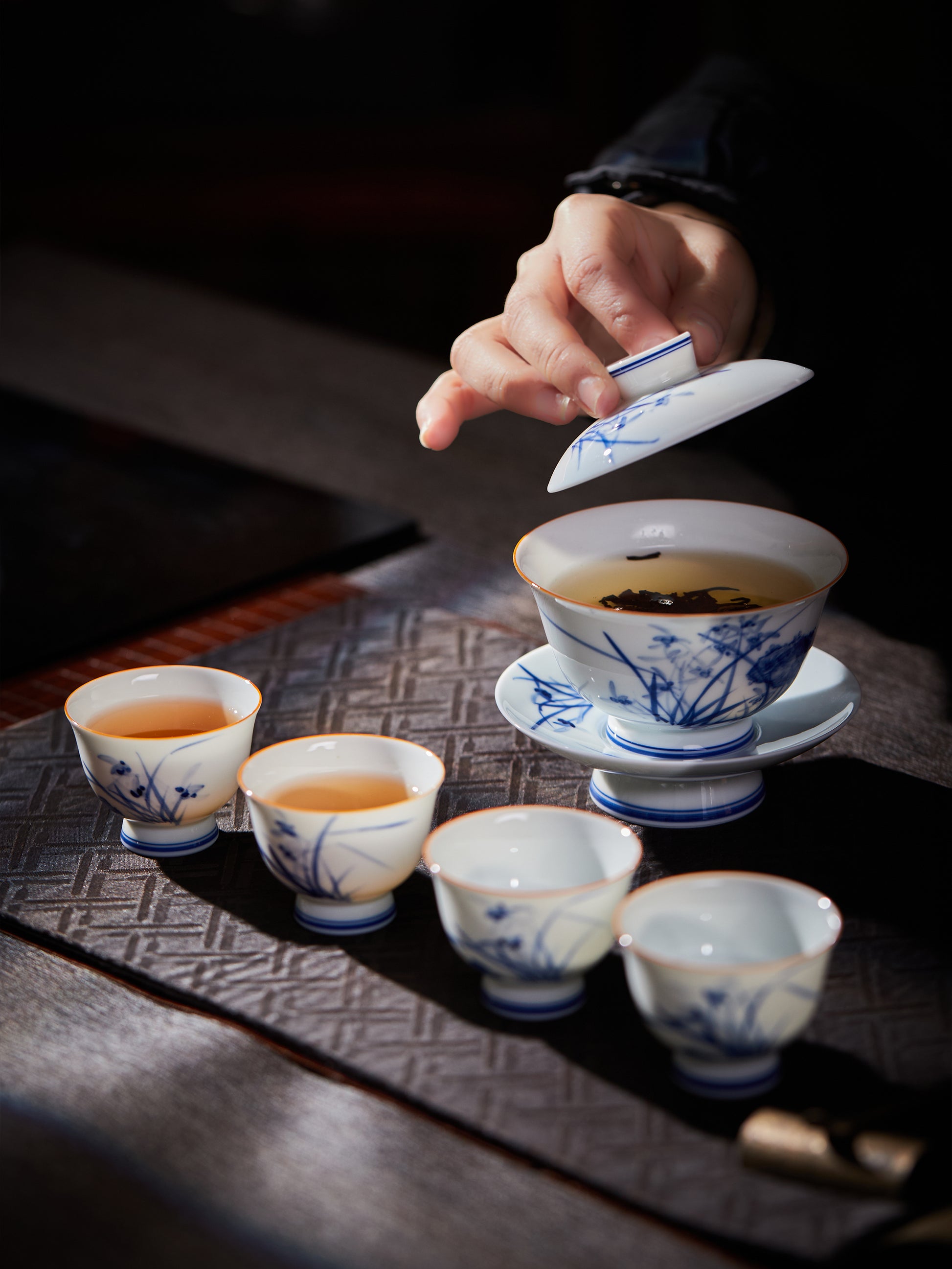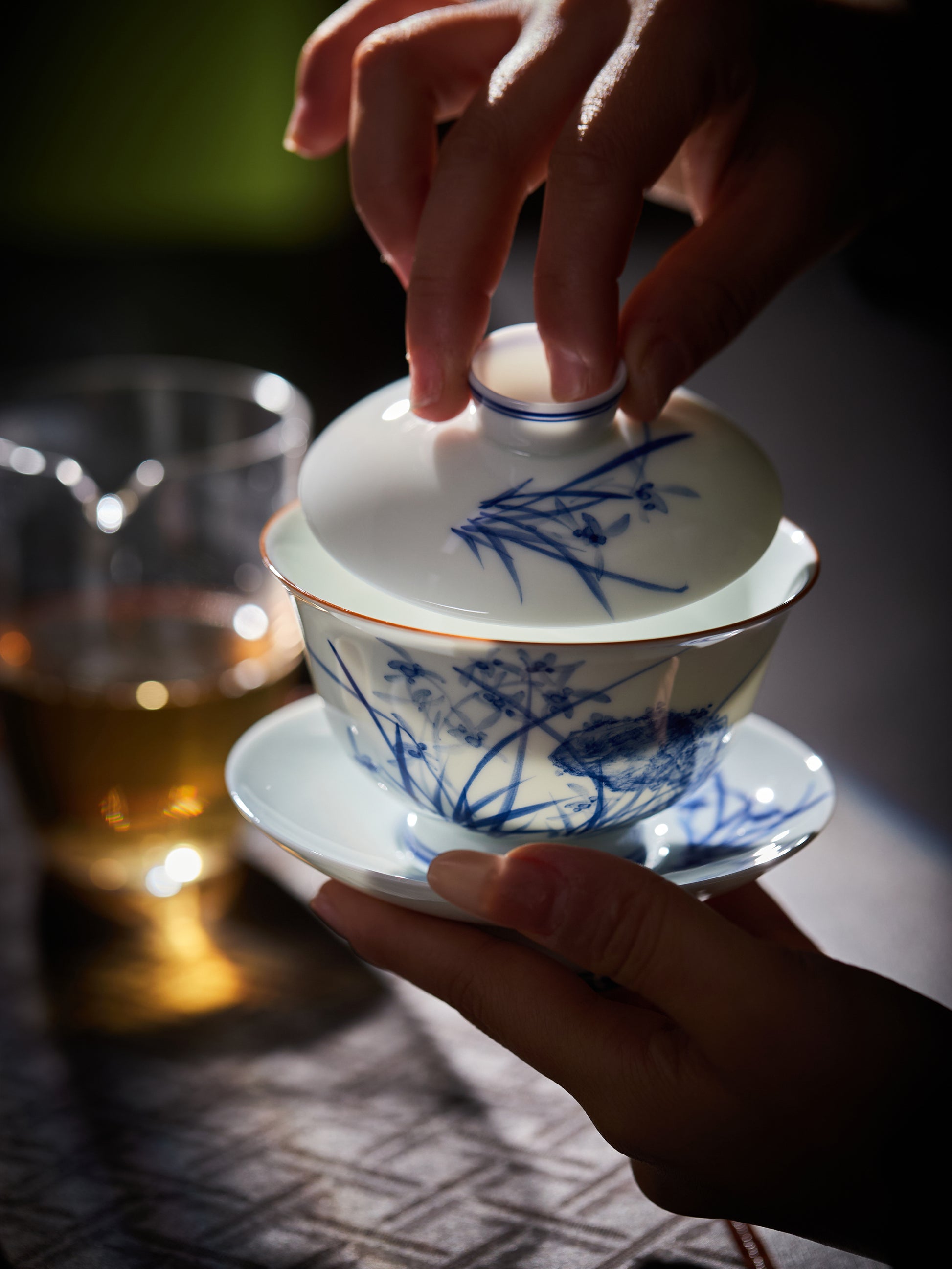 Jingdezhen Qinghua Porcelain: Natal lily Gaiwan